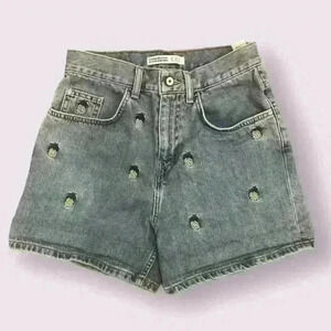 Zara High Waisted Denim Shorts Blue Jeans Pineapple Embroidery Size 2