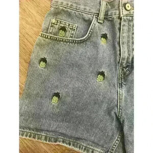 Adorable Zara blue denim high waisted shorts with yellow pineapples embroidered