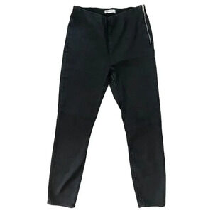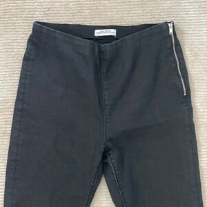 Zara High Waisted Pull On Zipper Zip Side Black Stretch Jeans Leggings Size L
