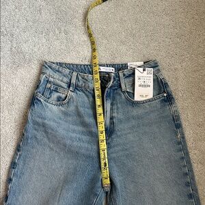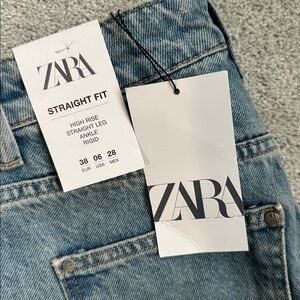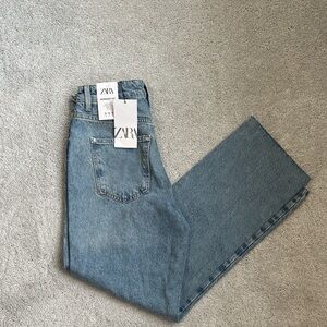 NWT, Classic light blue denim jeans from Zara. High waisted, straight leg, ankle length, frayed hem. Ideal for everyday style.