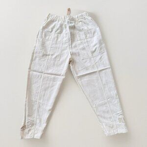 Zara High Waisted Tie Waist Cargo Pants Womens Small Beige Lyocell Cotton Linen