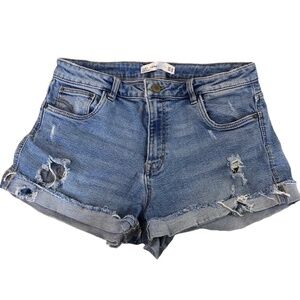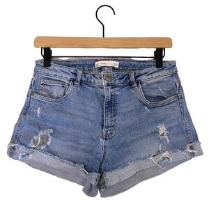 -Gorg Zara high rise denim jean shorts with cuffs, distressing, and pockets! Very stretchy and cute.