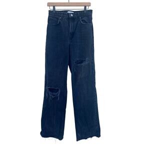 Zara High Waisted Wide Leg Jeans, Distressed, Black, Size 6