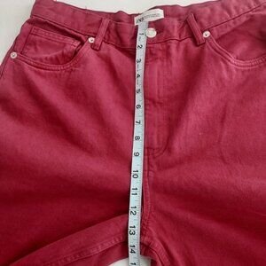 Size 12 Zara High Waisted Wide Leg Pink Jeans. 100% cotton. Five pockets. Waist 16.5" Rise 13" Inseam 34" Leg opening 10.5" Very good pre-owned condition.