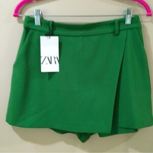 Zara High Waisted Wrap Shorts Green Size S Womens NWT New Blogger Fav