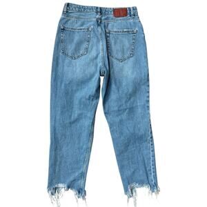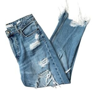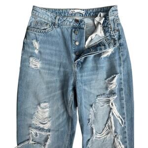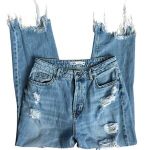 Zara High-Rise Button Fly Light Wash Destroyed Ankle Jeans Size 6