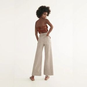 Zara High-Rise The Marine Straight Wide Leg Raw Hem Tan/Cream 6