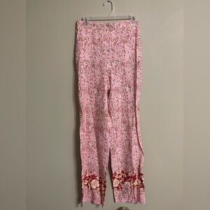 Zara High-Waisted Wide Leg Linen Blend Trouser Pants Size Small Paisley New Pink