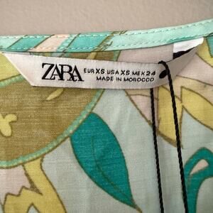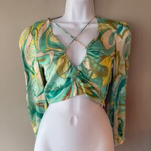 Zara Holly Crop Top Sea Green Paisley Cross Strap 70s Retro Sz XS Blogger Fav