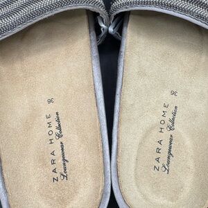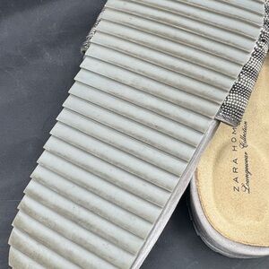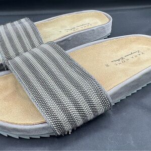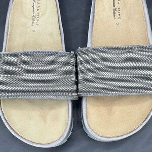 Step into comfort with 's stylish gray striped beaded slide sandals. Perfect for casual outings, these sandals offer both elegance and ease.