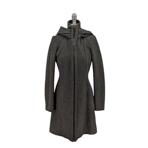 Zara Hooded Wool Zip Pea Coat Gray S preppy winter classic utility mid length