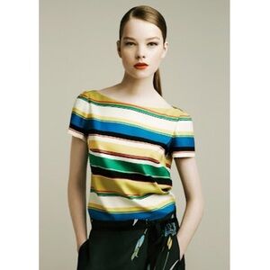 Zara Horizontal Striped Multicolor Boat Neck Y2K Retro Blouse Office Siren XS