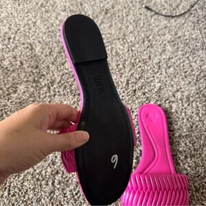 Zara Hot Pink Leather Slip On Sandals Womens 8.5 Beachy Flats Slides Casual