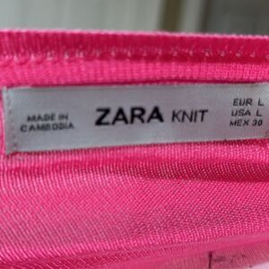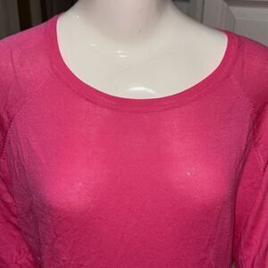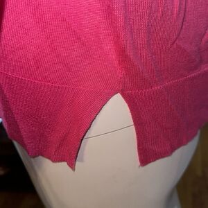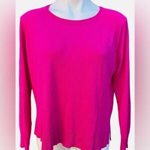 Zara Hot Pink Long Sleeve Sweater Fine Knit Crewneck Side Slit
