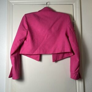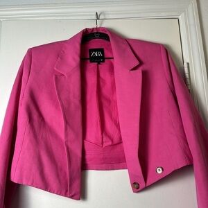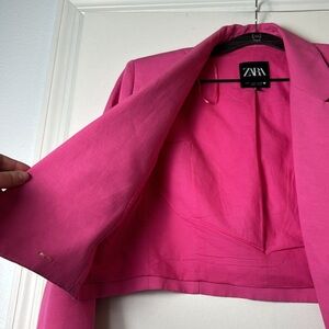 Zara Hot Pink Padded Shoulder One Button Cropped Blazer Size Medium Office Wear