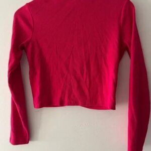 Zara Hot Pink Ribbed One Button Cropped Cardigan