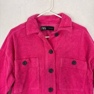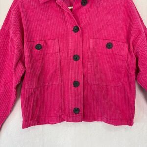Zara Hot Pink Corduroy Cropped Button Front Jacket Size XS