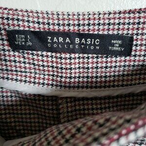 Zara Houndstooth Ankle Crop Pants with Ruffle Pockets Red/Black/Tan Size Women's Large