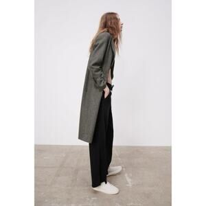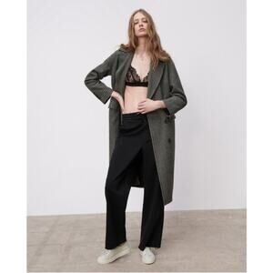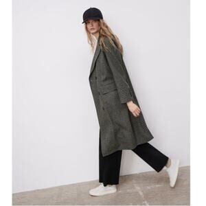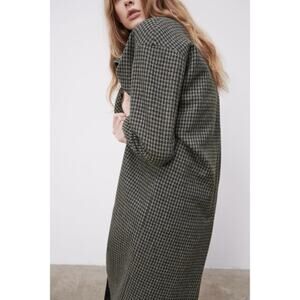 Zara Houndstooth Check Wool Blend Long Pea Coat Oversized Womens Size S