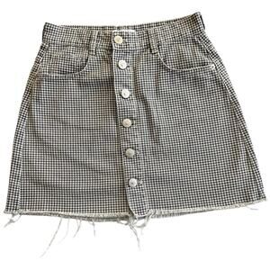 Zara Houndstooth Denim Mini Skirt Women Size Small Y2K 90s 80s hippie fashion trendy classic coquette Flattering Bottoms Front Button Closure Pockets 100% Cotton Mini Skirt Houndstooth