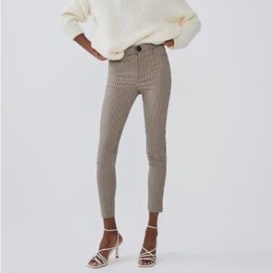 Zara Houndstooth High Rise Tan Jeggings sz M