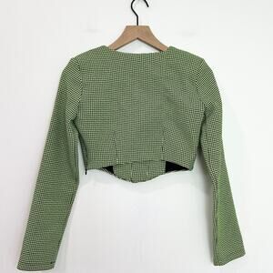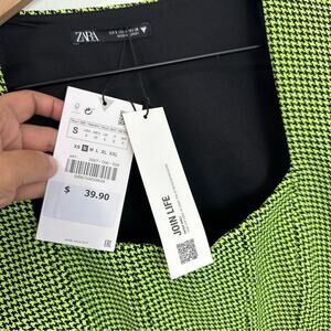 Zara Houndstooth Neon Green Corset Bustier Crop Top Size small