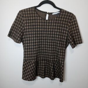 Zara Houndstooth Peplum Top Size Small
