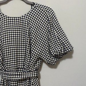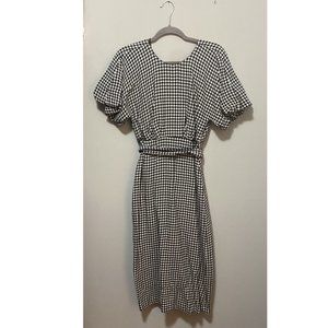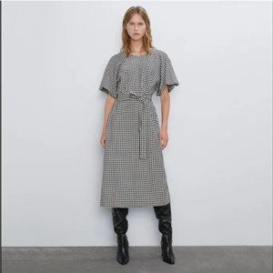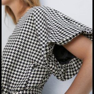 Zara Houndstooth Puff Sleeve Midi Dress