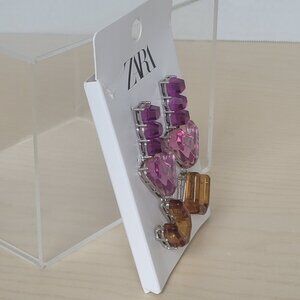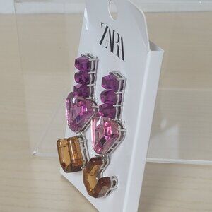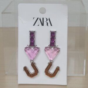 New Zara Accessories I Love You Heart Purple Acrylic Crystal Drop Statement Earrings