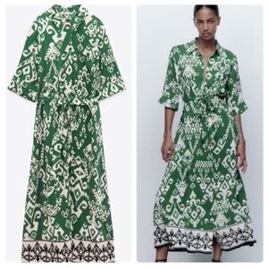 Zara Ikat Print Shirt Dress Tie Waist Medium