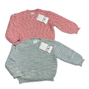 Zara Infant 12-18 mos Marled Knit Sweater Bundle Blue Green / Pink Orange