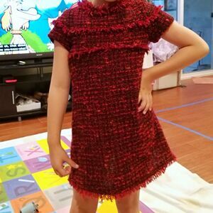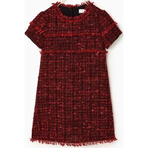 Zara Interview Pageant little Girls Red/Orange Cap Sleeve Long Tweed Dress Sz 6