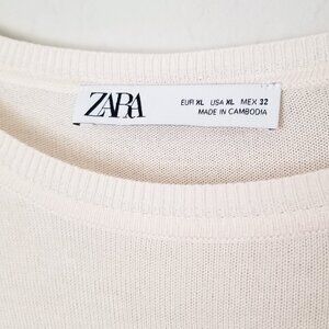Zara Ivory Black Striped Basic Knit Pullover Sweater Crewneck Lightweight XL