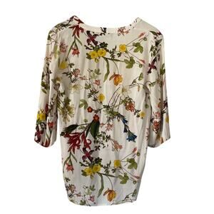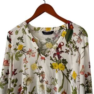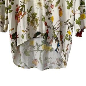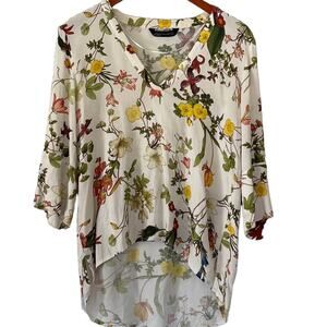Zara Ivory Floral V-Neck Ruffle 3/4 Sleeve High Low Blouse/Top Size, S