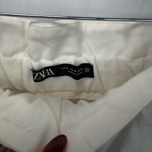 Zara Ivory High Rise Paperbag Jean Pants 100% Cotton Size Medium
