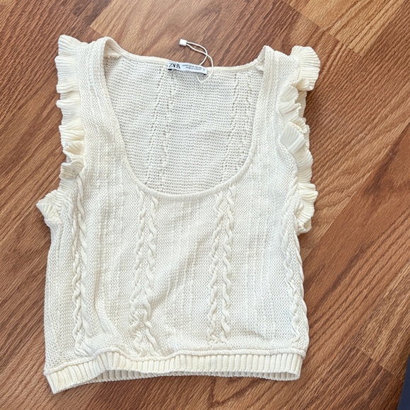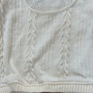 Ivory knit top with ruffle sleeves. Cable knit design. Ideal for casual wear.missing tag but excelent condition