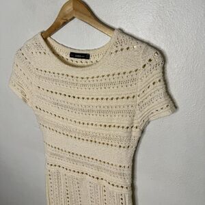Zara Ivory Openwork Knit Dress Short Sleeve Spring Fit & Flare Women’s Small