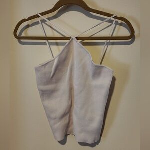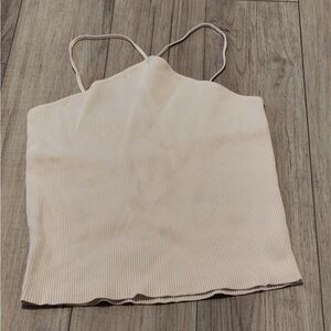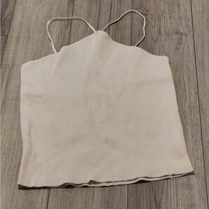 Zara Ivory Ribbed Cropped Halter Top - Spaghetti Strap - Size L - Summer Chic