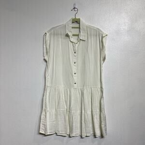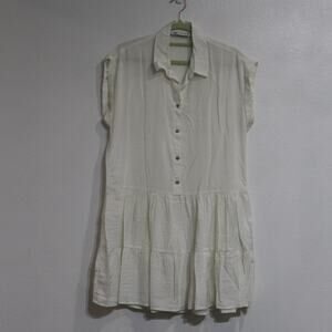 Zara Ivory Short Sleeve Tiered Tunic Mini Dress Sz XS