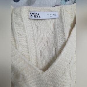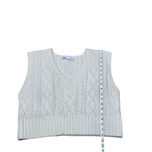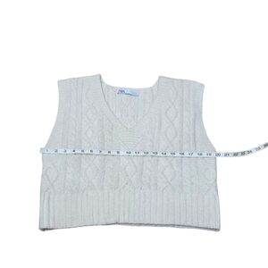 Zara Ivory Sweater Vest Size S Cable Knit Oversized Cropped Cozy Sleeveless