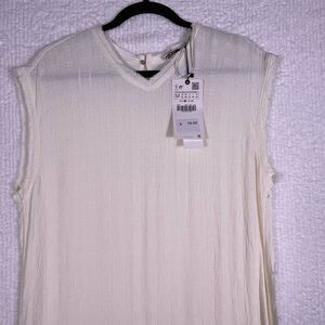 Zara Ivory Textured Raw Edges Keyhole Back Side Slit Tank Shift Dress Medium NWT
