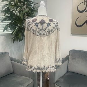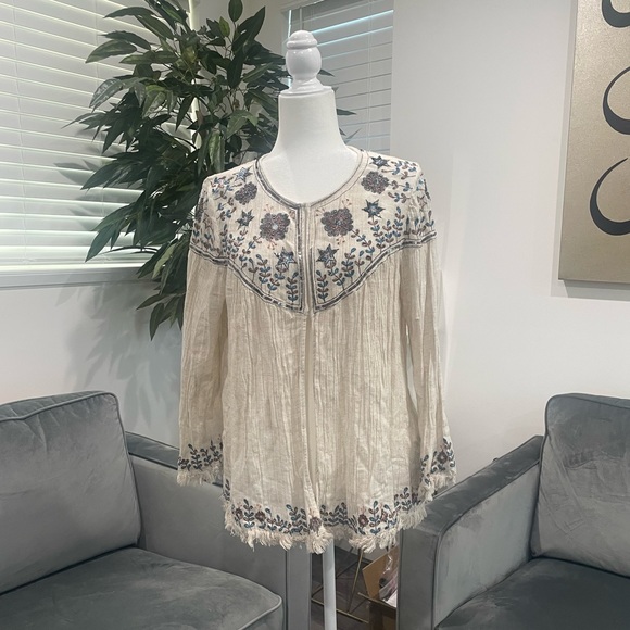 Super cute, bohemian style duster jacket. It’s so elegant and the embroidery is super cute. It’s perfect paired with a nice dress.