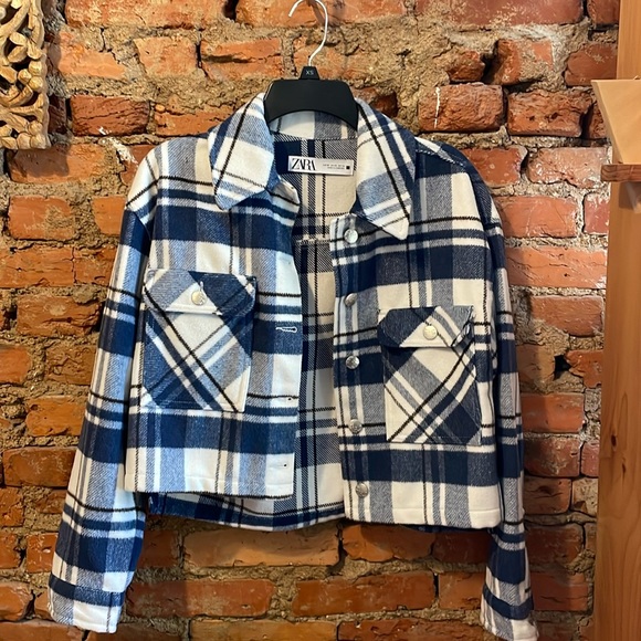 Blue plaid zara Shacket. Removed tags but never worn! Excellent condition