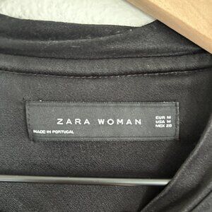 Zara Jacket M Black Satin Embroidered Asian Floral Bird Full Zip Bomber