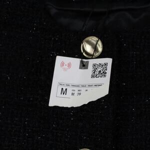 Zara Jacket Women Medium Metallic Thread Tweed Cropped Blazer Black Party Office