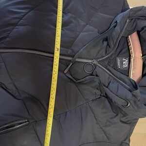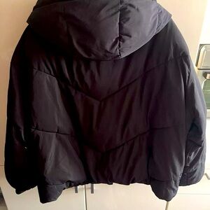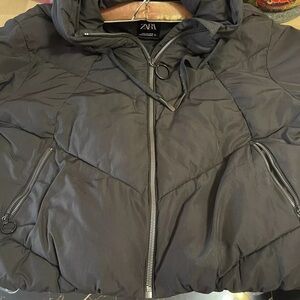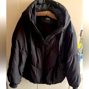 Zara Jacket Women Size S Black Nylon Full Zip Hooded Puffer Coat Oversized Fit