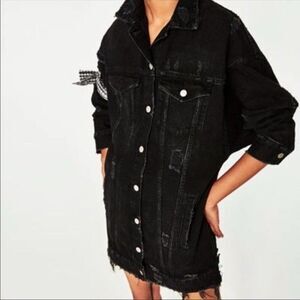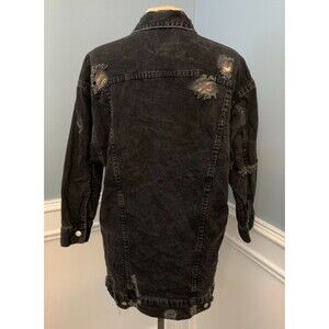 Zara Jacket Womens M Trafaluc Denim Longline Distressed Oversized Button Up