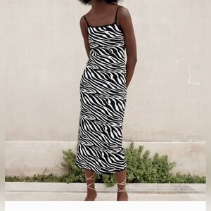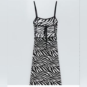 Zara Jacquard Animal Print Zebra Midi Open Back Stretch Knit Dress Size Small