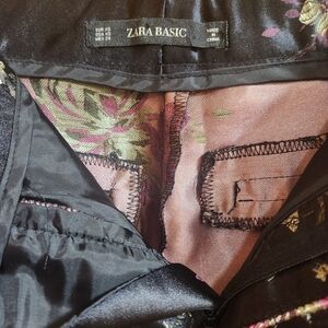 Zara Jacquard Black Floral Straight Leg Suit Pants