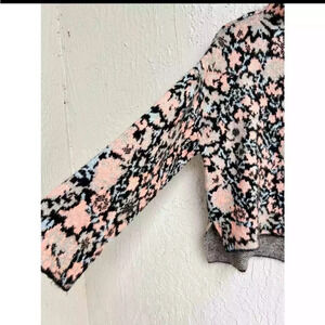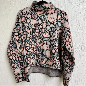 Zara Jacquard High Neck Wool Blend Floral Cozy Knit Sweater Pink Women's Size small
